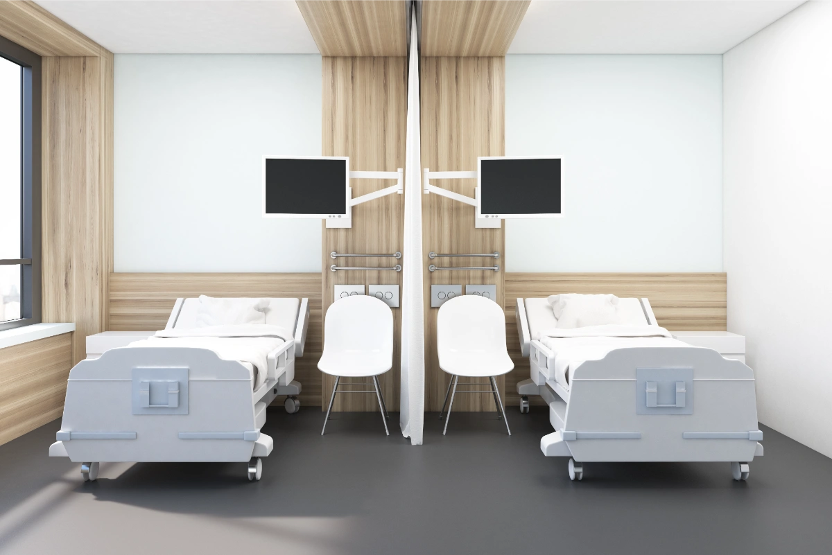 Hospitalisation en chambre individuelle avec sonnette d’appel pour le personnel soignant, lit articulé pour vous et votre accompagnant, et bien plus encore.